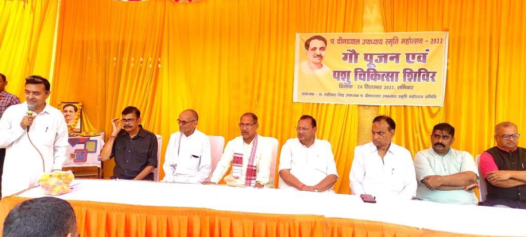 पं० दीनदयाल उपाध्याय स्मृति महोत्सव के तीसरे दिन आज निदेशक सोनपाल सिंह द्वारा दीनदयाल धाम स्थित गौशाला में गौ माता का पूजन किया। इस अवसर पर उपस्थित गौपालकों और ग्रामवासियों को संबोधित करते हुए डॉ० हरि भदौरिया मंत्री दीनदयाल कामधेनु गौशाला समिति ने कहा कि पं० दीनदयाल उपाध्याय का एकात्म मानव दर्शन और उनके बताए रास्ते पर चल कर हम लोग धीमे- धीमे स्वाबलंबी हो रहे हैं। गौशाला समाज में अंतिम पायदान पर बैठे लोगों को आगे लाने की सोच पर कार्य कर रही है। इस गौशाला का उद्देश्य मात्र दुग्ध उत्पादन नहीं है, बल्कि जो देसी गायों की प्रजाति विलुप्त हो रही हैं उनका संरक्षण कर उनकी नस्ल तैयार करना है यह गौशाला का प्रमुख उद्देश्य है। परखम गौशाला में विविध प्रकल्प संचालित होंगे। उन्होंने कहा कि गौपालन करें यह आर्थिक और स्वास्थ्य की दृष्टि से लाभदायक है।