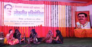 अपरान्ह में लोकगीत प्रतियोगिता का शुभारंभ बच्चियों द्वारा नृत्य के साथ गणेश वंदना के साथ हुआ। रीना सिंह और दीनदयाल धाम की बच्चियों की गणेश वंदना और नौबत गायन को सभी ने सराहा। लोकगीत प्रतियोगिता में 20 टीमों ने प्रतिभाग किया। प्रतियोगी बालिका और महिलाओं ने बधाई गीत, नौबत और मंगल गीत गाकर पंडित जी को जन्मदिन की बधाई दी।