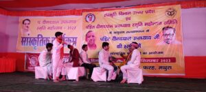 शुक्रवार रात्रि को संस्कृति विभाग उत्तर प्रदेश एवं पं० दीनदयाल उपाध्याय स्मृति महोत्सव समिति के तत्वाधान में आयोजित सांस्कृतिक कार्यक्रम में पं० दीनदयाल जी के जीवन वृत्त पर प्रस्तुत नाटिका में उनके मृत्यु के दृश्य ने सभी उपस्थित लोगों की आंखों को नम कर दिया। सभी ने पंडित जी के चित्रपट पर पुष्पांजलि अर्पित कर श्रद्धांजलि दी। कार्यक्रम का शुभारंभ ठा० ओमप्रकाश सिंह एमएलसी ने पं० दीनदयाल उपाध्याय के चित्रपट के सम्मुख दीप प्रज्वलित कर किया।