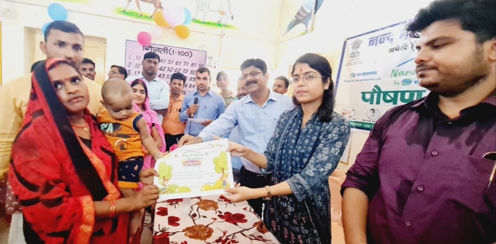 अमेठी। राष्ट्रीय पोषण माह के अन्तर्गत दरपीपुर, विकास खण्ड गौरीगंज के नंदघर में वेदान्ता समूह द्वारा पोषण संगोष्ठी का आयोजन किया गया। उक्त कार्यक्रम की मुख्य अतिथि मुख्य विकास अधिकारी सान्या छाबड़ा ने संगोष्ठी को संबोधित करते हुए कहा कि गर्भवती महिलाएं अपने स्वास्थ्य के प्रति सचेत रहें, पौष्टिक भोजन लें, नियमित जॉंच कराये, संस्थागत प्रसव करायें। सभी टीके लगवायें और बच्चों की सहेत का ध्यान रखें। उन्होंने यह भी कहा कि जो बच्चे कुपोषण से ठीक होकर सामान्य हुए हैं,उनका फालोअप करते रहें जिससे वो पुनः कुपोषण श्रेणी में न जाने पायें। गोष्ठी में जिला कार्यक्रम अधिकारी संतोष कुमार श्रीवास्तव ने पोषण के संबंध में विस्तार से जानकारी दी। उन्होंने बताया कि