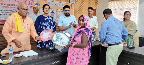प्रधानमंत्री आवास योजना के लाभार्थियों को वितरित किया गया चाभी, स्वीकृति पत्र व घड़ी