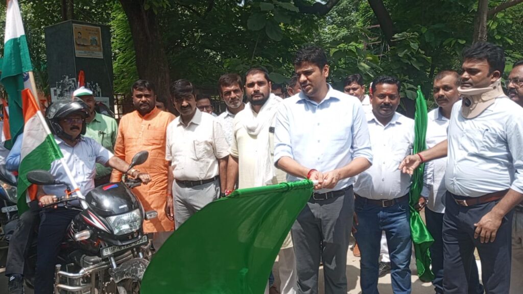 ‘‘आजादी का अमृत महोत्सव‘‘ के अन्तर्गत ‘हर घर तिरंगा‘ कार्यक्रम के आयोजन को भव्य रूप से मनाये जाने हेतु तिरंगा बाईक रैली निकाली गयी। रैली को जिलाधिकारी अविनाश कुमार ने विकास भवन से हरी झण्डी दिखाकर रवाना किया। रैली की अगुवाई मुख्य विकास अधिकारी संतोष कुमार वैश्य ने खुद बाईक चलाकर की एवं जनपदवासियों को संदेश दिया की हर घर तिरंगा फहराकर जनपद को प्रथम स्थान लाना है।