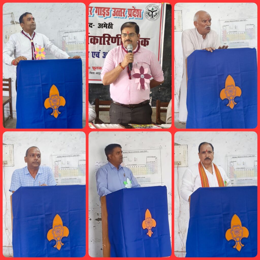 भारत स्काउट और गाइड उ० प्र०, अमेठी के द्वारा बुधवार को जीजीआईसी गौरीगंज में जिला कार्यकारिणी बैठक का आयोजन डॉ० राजेश कुमार द्विवेदी जिला विद्यालय निरीक्षक/जिला मुख्यायुक्त की अध्यक्षता में किया गया। जिनके साथ मौके पर संगठन के उपाध्यक्ष संजय तिवारी बीएसए, अयोध्या मंडल के एएसओसी कमलेश कुमार द्विवेदी, बैठक व्यवस्थापक डॉ० संगीता शर्मा जिला मुख्यालय आयुक्त, रामप्रकाश सिंह जिला सचिव, देवमणि उपाध्याय स्काउटिंग नोडल अधिकारी (सीबीएसई स्कूल) मंच पर उपस्थित रहे।