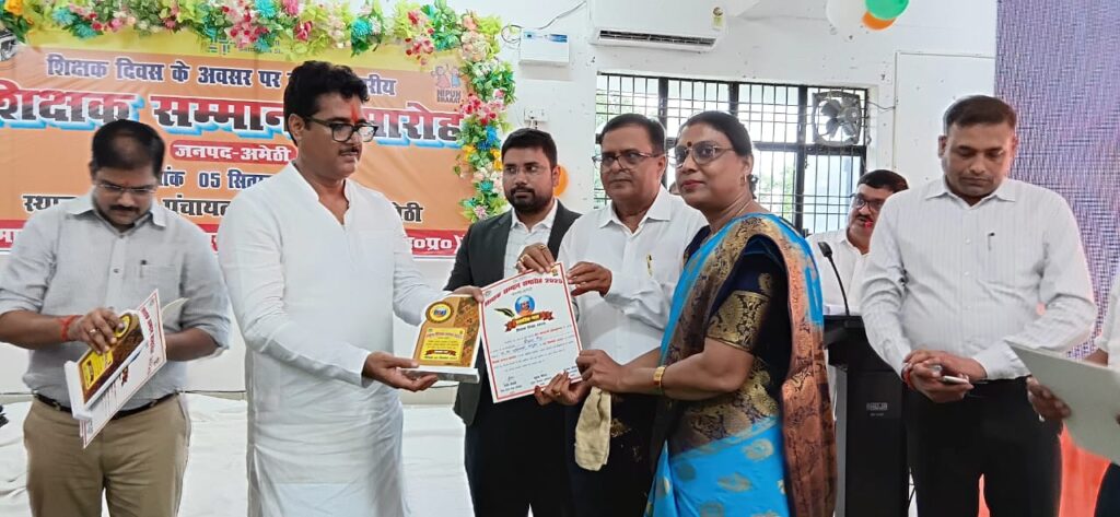 शिक्षक दिवस के अवसर पर जिला पंचायत रिसोर्स सेंटर (डीपीआरसी) गौरीगंज में बेसिक शिक्षा एवं माध्यमिक शिक्षा विभाग द्वारा शिक्षक सम्मान समारोह का आयोजन किया गया। कार्यक्रम में मुख्य अतिथि के रूप में विधायक गौरीगंज राकेश प्रताप सिंह तथा विशिष्ट अतिथि के रूप में मुख्य विकास अधिकारी सूरज पटेल और अपर जिलाधिकारी (न्यायिक) अनिल चतुर्वेदी उपस्थित रहे।