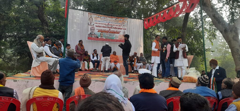 उत्तरप्रदेश इकाई के अध्यक्ष राजेश कुमार सिंह ने अपने सहयोगियों के साथ अतिथियों का सम्मान करते हुए बैठक का प्रयोजन तथा स्वागत उद्बोधन किया। मुख्य वक्ता राष्ट्रीय महासचिव जितेन्द्र रघुवंशी ने उपस्थित स्वतंत्रता सेनानी शहीद परिवारों तथा अतिथियों को सम्बोधित करते हुए कहा कि आजादी के अमृत महोत्सव में प्रधानमंत्री द्वारा आजादी के शताब्दी समारोह तक “स्वतंत्रता संग्राम सेनानियों के सपनों का भारत बनाएंगे” की घोषणा की गई थी।