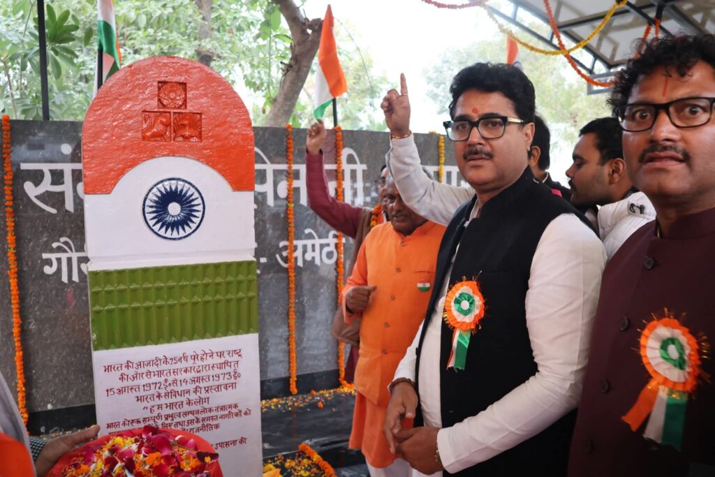 शिलापट्ट तथा 25 मीटर ऊंचाई पर स्थापित तिरंगे झण्डे का लोकार्पण