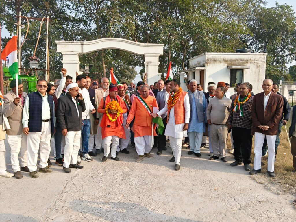 सम्मान यात्रा के ब्लॉक आफिस पहुंचने पर स्वतंत्रता संग्राम सेनानी भइया बहादुर सिंह, विधायक राकेश प्रताप सिंह, संगठन के राष्ट्रीय महासचिव जितेन्द्र रघुवंशी, ने शिलापट्ट तथा 25 मीटर ऊंचाई पर स्थापित तिरंगे झण्डे का लोकार्पण संयुक्त रूप से किया।