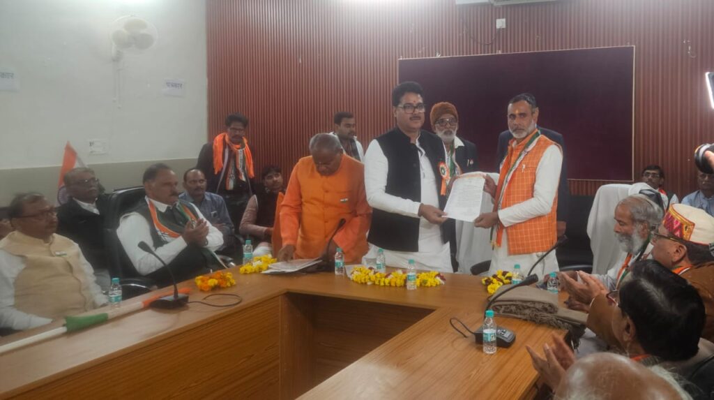 विधायक को सौंपा मुख्यमंत्री योगी के नाम अधिकार पत्र