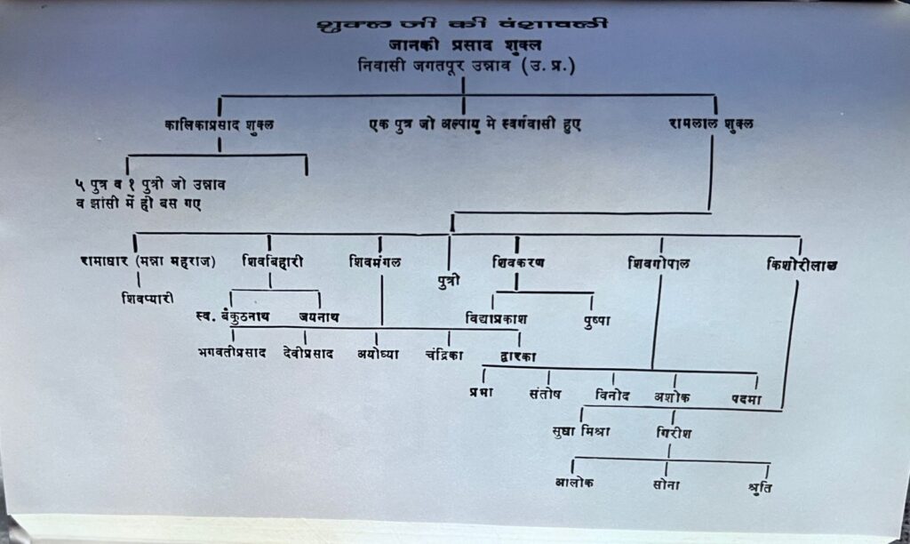 रामलाल शुक्ल जी के 6 पुत्र (रामाधार मन्ना महाराज, शिवबिहारी, शिवमंगल शिवकरण, शिवगोपाल, किशोरी लाल) और एक पुत्री थी। विनोद कुमार शुक्ल शिव गोपाल जी के आत्मज हैं।