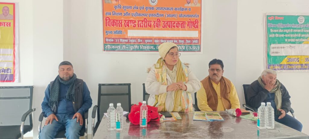 तहसील तिलोई पन्हौना गांव स्थित किसान कल्याण केंद्र पर विकास खंड स्तरीय रबी गोष्ठी का आयोजन कृषि विभाग द्वारा रबी फसलों के मौसम में किसानों को आधुनिक खेती, सरकारी योजनाओं (जैसे प्रधानमंत्री किसान सम्मान निधि, फसल बीमा), उन्नत बीज, खाद उपयोग, कीट नियंत्रण और वैज्ञानिक विधियों (जैसे जैविक खेती, सोलर पंप) की जानकारी देने और उनकी आय बढ़ाने पर चर्चा के साथ हुआ।